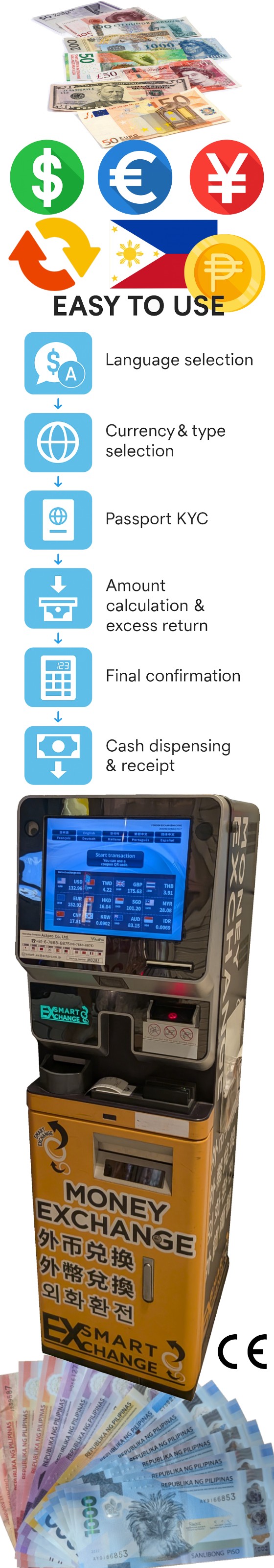 to exchange foreign banknotes into Philippine Pesos quickly, securely, and